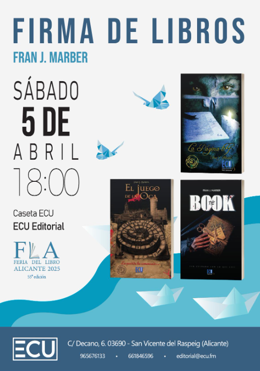 El próximo sábado 5 de abril por la tarde nos vemos en la caseta de la editorial «ECU» en la Feria del Libro de Alicante,¡.